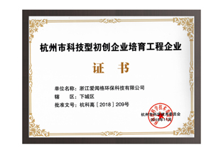Won the technological start-up enterprise cultivation engineering enterprise in Hangzhou