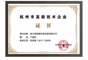 Our company won the title of high-tech enterprise in Hangzhou in 2017